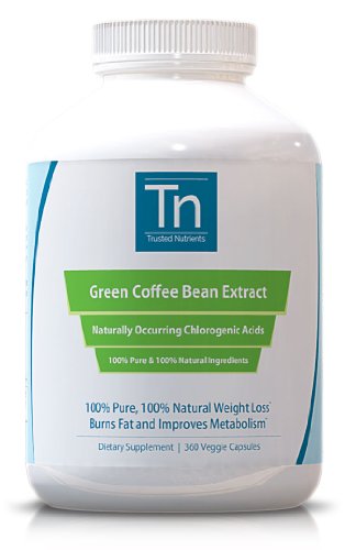 100% Pure Green Coffee Bean Extract: 800 mg, 360 Veggie Caps - Trusted Nutrients