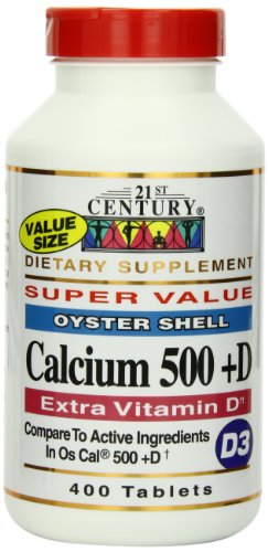 21st Century Calcium, 500mg Plus Vitamin D, 400 Tablets (Pack of 2)