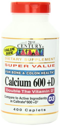 21st Century Calcium, 600mg Plus Vitamin D, 400 Caplets (Pack of 2)