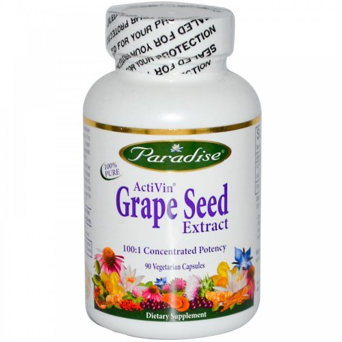 Activin Grape Seed Extract with Alma 125 mg by Paradise Herbs 90 VegCap Paradise Herbs Super Activin is naturally extracted using only the finest quality red grape seed. Our Standardized True Spectrum extract provides active levels of OPCs and flavonoids concentrated in the balanced ratio nature intended without isolating fractionizing or using toxic solvents harsh chemicals or gases. Activin supports against environmental and stress related free radicals that can cause premature aging and cellular damage. Studies show it is a far greater antioxidant than vitamins E C or beta carotene. Our unique formula contains Amla fruit extract a rejuvenator used in ayurvedic medicine and known for its nutrient dense levels of naturally occurring vitamin C. Supplemental Facts Serving Size 1 Vcap Amount per Vcap Daily Value Activin grape seed extract (Vitis vinifera) 100 1 OPCs greater than 95 (PV method) 125 mg Amla fruit extract (Phyllanthus emblica) 20 1 (Equivalent to 2 500 mg whole fruit) 125