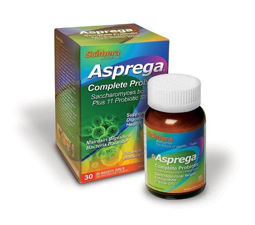 Asprega Complete Probiotic 30 Count. Exceptional and potent broad spectrum probiotic comprised of 11different important probiotic strains and Saccharomyces boulardii. Designed to support the health and function of the gastrointestinal tract. Our once a day delayed released capsule ensures convience and maximal potency.