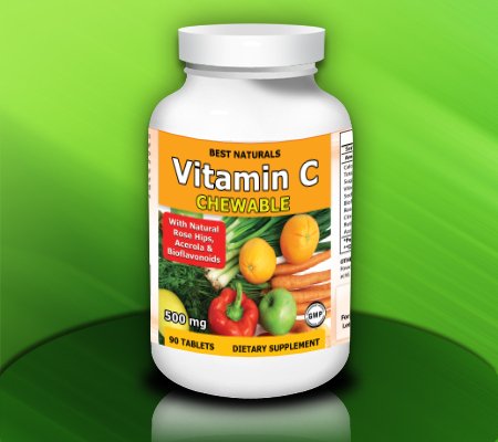 Best Naturals Vitamin C Chewable with Natural Rose Hips, Acerola & Bioflavonoids, 500 mg, 90 tablets