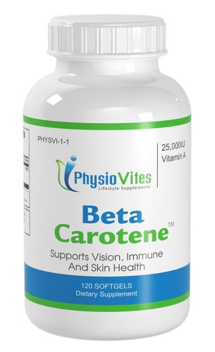 Beta Carotene Supplement Beta Carotene Vision, Immune And Skin Health Vitamin A 25,000 IU PhysioVites 120 Softgels 1 Bottle