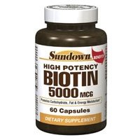 Biotin 5000 Mcg Capsules by Sundown is a Vitamin Supplement. Benefits: Found in foods such as oatmeal and soy, Biotin, a water-soluble B vitamin, assists in energy metabolism in cells. Biotin helps to support healthy skin and hair.