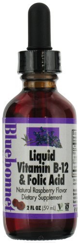 Vitamin B-12 Folic Acid Raspberry by Bluebonnet 2 oz Liquid VITAMIN B-12 FOLIC ACID 1000 mcg. 400 mcg.TABLETS (chewable tablets) Formulated with 100 natural strawberry and raspberry. Available in chewable form for maximum bioavailability. 100 Vegetarian tablets.