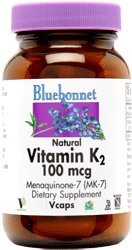 Bluebonnet Nutrition Natural Vitamin K2 100 mcg - 50 Vegetarian Capsules Bluebonnet Nutrition Natural Vitamin K2 (MK-7, Menaquinone-7) supports cardiovascular and blood health. Bluebonnet Nutrition Natural Vitamin K2 also plays a role in bone health. Bluebonnet Nutrition Natural Vitamin K2 contains natural color and is free of preservative-free, gluten-free, wheat-free, yeast-free, salt-free, sugar-free, starch-free, and corn-free. Bluebonnet Nutrition Natural Vitamin K2 formula is derived froma fermented soybean food used since ancient times in Japan and currently valued as a vital source of nutrients. Menaquinone-7 is known to enjoy a longer half-life than other forms of Vitamin K, and is therefore believed to offer unique benefits to the body. Bluebonnet Nutrition Natural Vitamin K2 is intended to provide nutritive support for both bone and arterial health. Vitamin K is a group of lipid-soluble or lipophilic (fat-loving) vitamins; only two of which occur naturally.Menaquinone-7 (K2 or MK-7) is generally synthesized in the large intestine by bacteria in humans or can be found in small amounts in liver curd, eggs, cheese and fermented soybeans known as natto. Very little vitamin K is actually stored in the body and what is stored is rapidly depleted without regular dietary intake. The body recycles it through a process called the vitamin K cycle. Vitamin K1 is essential for blood clotting properties, while K2 has been found to offset bone demineralization issues by increasing bone formation and decreasing bone reabsorption in the body. About Bluebonnet Nutrition Bluebonnet Nutrition was founded in 1991 on the basic principle that they offer the cleanest, purest, most natural nutritional supplements offered exclusively through independent natural food retailers. Today, Bluebonnet Nutrition is proud to say that we still honor this commitment and that their devotion is true and loyal. The landscape of nutrition is changing rapidly.