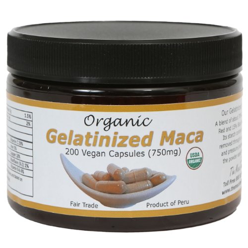 Certified Organic Gelatinized Maca Capsules - Vegan, Fair Trade - Gmo-free - 750mg - 200ct
