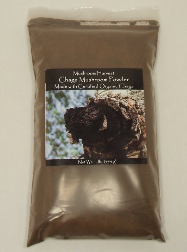 This is a 1 pound (16 ounces) bag of Chaga mushroom powder, consisting of a blend of activated chaga mushroom preparation of mycelium and sclerotia from organically grown mushrooms, and activated chaga mushroom preparation of sclerotia wild-harvested from birch trees in the USA.
