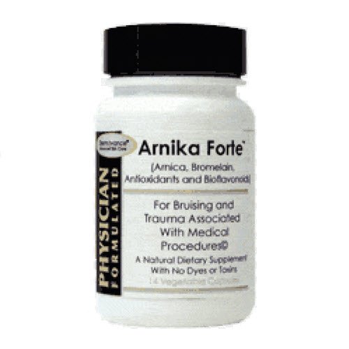 Product Description Arnika Forte (Arnica Montana 30x, Bromelain, Antioxidants, Bioflavonoids) One Complete Formulation to Speed Your Recovery from Sugical Procedures and Dermal Filler Injections Arnika Forte, the only combination of arnica montana and bromelain, has been shown to speed the healing time up to 50% allowing for faster recovery from bruising, swelling, and pain associated with soft tissue injuries. Arnika Forte uses all natural ingredients and is free of dyes and artificial colors. There are no reported side effects with Arnika Forte. What is Arnika Forte? *Homeopathic Arnica Montana 30x, which has been widely used, is clinically proven effective and recognized by the FDA as safe. *Bromelain is a natural substance found in pineapple but concentrated in the stem. Just eating pineapple fruit or drinking pineapple juice will not provide enough bromelain to be effective. However, Arnika Forte contains a safe, optimal amount of bromelain to be effective. *Grape Seed Extract is a very powerful bioflavinoid to decrease capillary permeability and fragility. Grape Seed Extract helps to support capillary function and to reduce bruising, swelling, and pain.