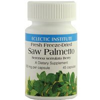 Saw Palmetto 600mg Freeze-Dried by Eclectic Institute 240 VegCap Saw Palmetto 600 mg. 240 veg caps Each 600 mg. capsule contains 100 Fresh Freeze-Dried Wildcrafted Serenoa serrulata berry. Average Assay 81 mg. Total Lipophilic Compounds (13.5 ) containing 80-95 Fatty Acids. Calculated as Ether soluble extractives. Contains Co-Factors of Whole Saw Palmetto berry including Organic Acids Resins Essential oils Polysaccharides.
