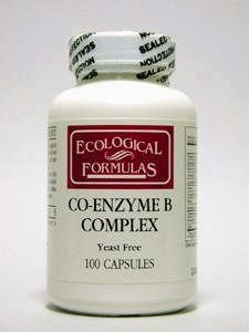 Co-Enzyme B Complex 100 capsA Nutritional SupplementSupplement FactsServing Size: 2 capsulesServings Per Container: 50Amount Per Serving:Thiamine (as thiamine mononitrate) 60 mgRiboflavin (as riboflavin and riboflavin 5' phosphate) 60 mgNiacin (as niacinamide) 30 mgVitamin B6 (as pyridoxine HCl and pyridoxal-5 phosphate) 60 mgFolate 400 mcgVitamin B12 (cyanocobalamin) 250 mcgBiotin 300 mcgPantothenic Acid (as calcium pantothenate: 300 mg) 288 mgCholine bitartrate 300 mgMyoinositol 150 mgPABA 30 mgOther Ingredients: Silicon DioxideDirections: Take two capsules daily, or as directed by a physician.CO-ENZYME B COMPLEX is a scientifically-designed nutritional product containing a completely balanced and well-absorbed B Vitamin Formula. Biotin, folic acid and cyanocobalamin are derived from bacterial sources.The nutrients contained within these capsules are the purest, U.S.P. reagent grade vitamins available and contain no diluents, preservatives, chemical additives, or other allergenic ingredients.Yeast FreeContains no yeast, soy, or wheat.