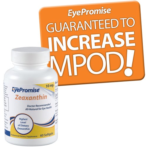 ZeaVision EyePromise Zeaxanthin 10 mg. 60 Softgels ZeaVision EyePromise Zeaxanthin 10 mg. is designed to increase Macular Pigment Optical Density (MPOD) and protect the photo-receptors, containing the highest available levels of dietary Zeaxanthini. Zeaxanthin is scarce in the average American daily diet, leaving a significant dietary gap for most people. One dose of Eyepromise Zeaxanthin contains 10 mgs. of dietary Zeaxanthin - equal to approximately 20 ears of corn. Highest level of dietary Zeaxanthin available The only brand guaranteed to increase MPOD Highest-quality, natural ingredients Made in the USA Dr. Stuart Richer, an expert in ocular nutrition, published the Zeaxanthin and Visual Function (ZVF) Trial and follow-up paper, "Macular Re-pigmentation Enhances Driving in Elderly Adult Males with Macular Degeneration," which states a daily dose of 8 mgs. of Zeaxanthin improved vision in the areas of: Driving vision - improved glare recovery, light sensitivity, and driving confidence Fine detail - improvement of an additional 8.5 letters on an eye chart after 12 months of supplementation Foveal shape discrimination - discern differences at various differences more easily Scotoma resolution - elimination of blind spots Eye Promise Zeaxanthin is formulated for: Vegans (contains no animal by-products) Patients with fish oil allergies Low MPOD AMD risk factors Those that want Zeaxanthin only Improved visual performance Eye Promise macular pigment formulas are designed to increase macular pigment, providing vision protection and enhancement. Low macular pigment is a leading risk factor for AMD, which is the leading cause of severe vision loss in adults over the age of 55, affecting millions of Americans each year.