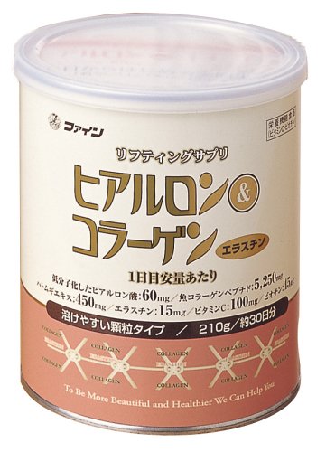 FINE Hyaluron & Collagen: With Elastin, Hyaluronic acid (HA), fish peptide, collagen, Biotin, Vitamin C, Pearl Coix, (Hatomugi) is a complete formulae for reversing aging, dry, scaly, wrinkled, sagging, age spotted skin by building, youthful, flexible, elastic, radiant, younger-looking firmer skin, and renewing joints, eyes, and connective tissue. FINE Hyaluron & Collagen combines the ingredients necessary to keep your skin moist and firm, looking younger than ever. These are the essences considered essential for beautifying the body from within.FINE Collagen is derived from fish because it has the same basic molecular components. It helps the body to replenish its own collagen supply and boost collagen cell turnover, assisting the body in making younger-looking and firmer skin. With its premium quality and low molecular weight FINE collagen peptide has greater absorption and utilization than other collagen products.Hyaluronic Acid (HA) is vital to skin. While collagen gives skin its firmness, it is the HA that nourishes and hydrates the collagen. 50% of the HA in our body resides in the skin. Hyaluronic acid production decreases with age causing a reduction in moisture binding capacity, resulting in dry skin and weak joints.HA, Collagen and Elastin are vital ingredients in maintaining the skin's layers and structure. HA acts as a space filler between cells, while collagen and elastin fibers act as a constant lubricant. HA is also present in the synovial fluid of joints and eyes, providing vital moisturizing protection and flexibility. HA may help slow signs of aging, wrinkles, fatigue, and diminished eye function. FINE HA with its low molecular weight ensures optimum absorption and utilization by the intestinal tract.