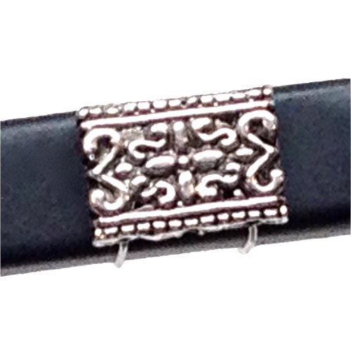 This is a definite "go to" accessory. The silver filigree charm goes everywhere you do and looks great in every situation. Silver-finished metal with a filigree design. Clear elastic cording. 11x17mm.