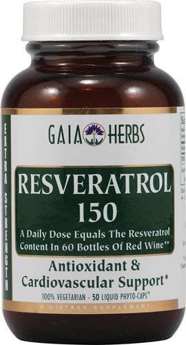Provides Antioxidant & Cardiovascular Support Supports Healthy Aging Trans-Resveratrol: 150 mg Resveratrol Concentration = 60 Bottles of Wine Per Serving Gaia Farm Brevard, NCOver 40 crops are grown each year on ourcertified organic farm. 250 fragrant acres of Valerian, Echinacea, HolyBasil, Hawthorn, Nettles, and more grace our valley. Each plant thrivesnaturally here, in one of the most fertile bioregions in the world.DailyWellnessLongevity and vitality come naturally when yourbody is in a state of harmony. Gaia Herbs DailyWellness productspromote optimal wellness by giving you the daily support you need. Resveratrol-150The phytochemical resveratrol has garneredconsiderable scientific attention for its potential to support healthyblood vessel function and promote heart health. Made with sustainablyharvested Japanese Knotweed, a natural source of trans-Resveratrol- GaiaHerbs' Resveratrol 150 provides the Resveratrol content of 60 bottlesof red wine in one daily dose. The Gaia DifferenceHigh potency, easy absorption Alcohol-free Liquid Phyto-Caps100% vegetarian, dairy free, no gluten-containing ingredients Easily digestible plant-derived capsuleLaboratory tested for purity Free of Heavy-metal toxicity