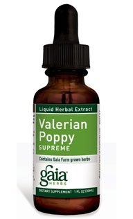 Valerian Poppy Supreme Extract by Gaia Herbs 1 oz Liquid Valerian Poppy Supreme Extract 1 oz Liquid Product Valerian Poppy Supreme is a unique synergistic blend created to establish a sense of calm in the body. This product contains Valerian Root Skullcap and California Poppy all of which are Certified Organic and grown on the Gaia Herbs Farm. Suggested Use As a dietary supplement Take 40-60 drops of extract in a small amount of water every twenty minutes beginning one hour before bedtime (for a maximum of three doses). Maximum time of use one month. - Or as directed by your healthcare professional. Supplement Facts Serving Size 40 Drops Servings Per Container 22.5 Amount Per Serving Daily Value Proprietary Blend Extracts From Valerian Root American Skullcap herb fresh Kava Kava root California poppy herb and root passionflower flowering vine German Chamomile flowers mugwort herb 52-62 pure grain Alcohol USP and Water Certified Organic Ingredient Ecologically Harvested Percent Daily V