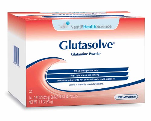 RESOURCE GLUTASOLVE Specialized Glutamine-Intensive Powder is designed for conditions associated with gastrointestinal (GI) injury or disease. Glutamine is the preferred amino acid fuel source for the GI tract and is recognized to play an important role in GI health. Each serving contains 15 g of L-glutamine, mixes easily with water, or can be mixed with foods like yogurt, applesauce or pudding.