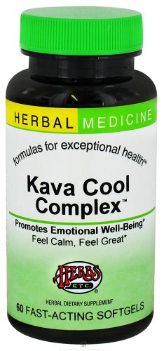 Kava Cool Complex by Herbs Etc 60 Softgel Kava Cool Complex 60 Softgel Kava Cool Complex Possesses mood elevator properties. Useful for mild anxiety edginess tension mental and physical agitation. Relieves nervousness and muscle tension due to stress. Permits sleep when insomnia is due to muscle and or mental tension. Supports a positive mental outlook. Ingredients Kava root Chamomile flower fresh and dry St. John's Wort herb in bud fresh Oat seed in the milky stage fresh Passionflower herb tip Hops strobile fresh Skullcap herb and Stevia herb. Suggested Use As a dietary supplement Take one softgel or 30 drops with water as needed. Or as directed by your healthcare professional. Supplement Facts Serving Size 1 Softgel Servings Per Container 60 Amount Per Serving Daily Value Calories 5 Proprietary Blend 200 mg Alcohol Free Concentrated Extracts of Kava root Chamomile flower fresh and dry St. John's Wort herb in bud fresh Oat seed in the milky stage fresh Passionflower herb tip Hops str