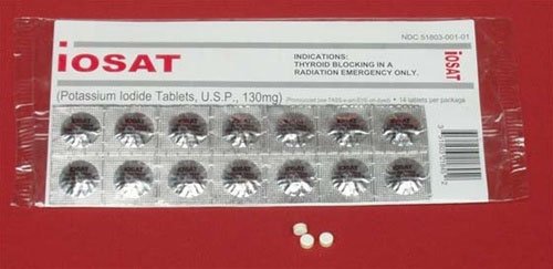 In 1982, the FDA approved IOSAT potassium iodide tablets for blocking the thyroid's absorption of cancer-causing radioactive iodine (only the thyroid absorbs iodine). Saturate the thyroid with potassium iodide's stable iodine so it won't absorb radioactive iodine, the predominate radioisotope released from a nuclear reactor release or nuclear bomb fallout.