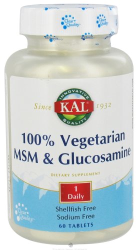 KAL 100% vegetarian MSM and glucosamine provides MSM, a source of organic sulfur, that is intended to provide nutritive support for healthy joint function and is critical to the production of connective tissue and cartilage. Important for proper bone, gastrointestinal, respiratory and metabolic functions. Intended to provide nutritive support for connective tissue by helping to keep collagen supple and healthy in the joints. Shellfish-free.