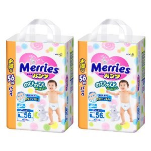 Kao | Diapers | Merries Pants Nobinobi Walker L-size { 9kg~14kg } 112sheets [ Case sale 56sheets × 2pack ] Japanese Import