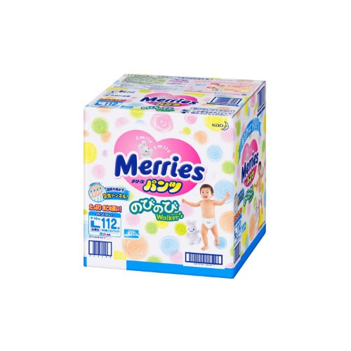 Kao | Diapers | Merries Pants Nobinobi Walker L-size { 9kg~14kg } 112sheets [ Color Box Sale 56sheets × 2pack ]