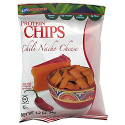 Protein Chips. Chili Nacho Cheese. Gluten Free. 12 g lean soy protein per 34 grams serving. 4 g fiber per 34 gram serving. No trans fat. Manage your weight without giving up taste. Based on low Glycemic index. Made with all-natural ingredients.