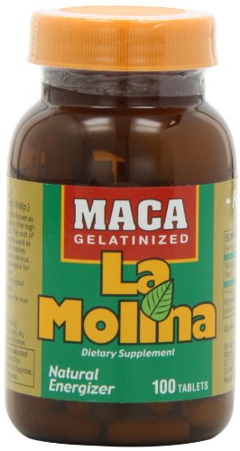 La Molina Gelatinized Maca, 845 Milligrams of Gelatinized Maca Pure per Tablet, 100 Tablets: Maca La Molina is the true brand feature on CNN & Discovery Health and the only brand of Maca approved by physicians w/ numerous published clinical trials done by University of Cayetano Heredia. Maca is a plant that grows in the high zones of the Peruvian Andes. The root of this plant has been traditionally used as primary source of energy by the natives of the region that goes back to various milleniums before the famous Inca Empire for extreme boosting of sexual drive and performance. The root of the maca is a nutritional supplement for natural health, recommended for men and women. Maca is a natural hormone balancer which not only acts as a natural sexual libido enhancer and eases menapause and PMS symptoms, but also boosts energy and improves stamina for athletes or active person. La Molina is the only brand of maca invested in numerous international published clinical trials done on humans. Please keep in mind that our clinical test is base on our gelatinized maca. Do not confuse with other brand of ordinary maca. Our clinical test shows that one tablet of our Maca gelatinized La Molina is equivalent to 6-8 tablets of other brand. That is due to our gelatization procedure which made our Maca to be over 98% bio rate compare to 48% of regular maca.