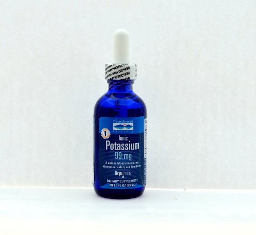 Ionic Potassium 99 mg by Trace Minerals 2 oz Liquid Ionic Potassium 99 mg 2 oz Liquid Ionic Potassium is a natural source of concentrated liquid potassium in ionic form. Potassium is an essential mineral for basic life function and is found in every cell of the body. Its essential for proper nerve conduction muscle function fluid balance and helps maintain healthy heart and brain function. Suggested Use As a dietary supplement Shake well. Using the metered dropper take 1.75 mL daily with juice or food to mask the concentrated mineral flavor.Do not refrigerate. Keep out of reach of children. - Or as directed by your healthcare professional. Supplement Facts Serving Size 1.75 mL (1 3 tsp. 1 3 4 full droppers) Servings Per Container 33 Amount Per Serving Daily Value Magnesium (ConcenTrace) 30 mg 8 Chloride (ConcenTrace) 300 mg 9 Sodium (Sea Minerals) 65 mg 4 Potassium (Potassium Chloride 99 mg 3 Sulfate (ConcenTrace) 30 mg Supplement Facts Are Based On Scoops In Oz Of Water Percent Daily