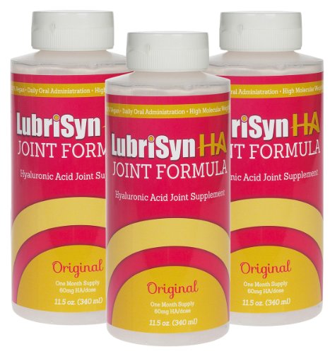 LubriSynHA (formerly LubriSynHU) is your daily source of hyaluronan - the naturally-occurring fluid that cushions your joints. The new 11.5oz. bottle is convenient sized for a 30-day supply of LubriSynHA and is now 20% stronger formulation. The three month supply consists of three 11.5oz. bottles.