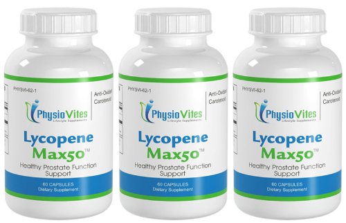 Lycopene Max50 Super Strength Men's Healthy Prostate Support PhysioVites Lycopene Max50 Lycopene 50mg 180 Capsules 3 Bottles
