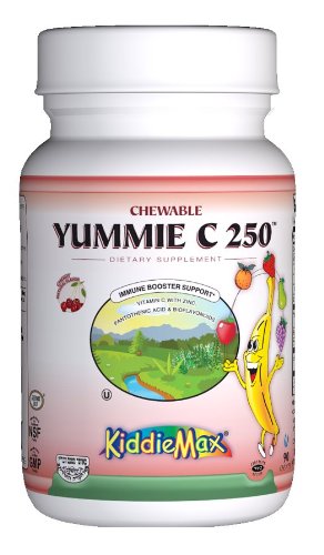 Non Acidic, Vitamin C, Natural Cherry Flavor Support a healthy immune system Fights the common cold Yummie C 250™ is our unique product formulated with children in mind. It combines the health benefits of non-acidic vitamin C, pantothenic acid, (vitamin B5), zinc and lemon bioflavonoids into one great product. Vitamin C helps support a healthy immune system, fights the common cold. Pantothenic acid is added since it may help relieve symptoms of allergies. Zinc is a key nutrient in maintaining growth improvement and fights the common cold. We then add bioflavonoids because they are key antioxidants that help maintain healthy blood vessels, vision, and immunity. To get the health benefits of all these key ingredients, try Yummie C-250™. The natural flavor lets you enjoy the health benefits in an easy to take form.