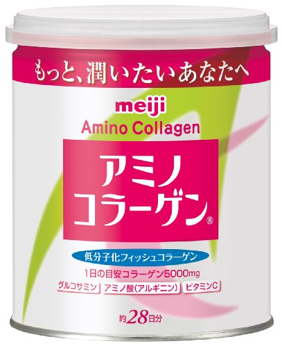 Meiji Amino Collagen Powder nourishes your skin from inside! Meiji Amino Collagen Powder works better than creams and lotions which can't completely penetrate deeply enough to increase skin's collagen. Add this easy-to-mix powder can dissolve it with any your favorite beverage, for example juice or milk. Studies show improvement in appearance, elasticity, and texture of the skin, plus health benefits to bones, joints, and muscles!Taking collagen only is not enough. In addition to fish collagen, Meiji Amino Collagen Powder are added 3 more ingredients to enhance its effectiveness. It include:Arginine (amino acid) 450mg - revitalizes your beautiful skinGlucosamine 60mg - creates hyaluronic acidVitamin C 50mg - necessary for creating collagenCollagen is the main component to the youthfulness and beauty. The amount of collagen in your skin starts to drop sharply after the age of 20. Collagen helps to restore skin elasticity and diminish fine lines. Therefore, replenishing generous amounts of collagen is a shortcut to maintaining a youthful appearance. Meiji Amino Collagen is made by high quality of fish collagen peptide, it contains very low calories.