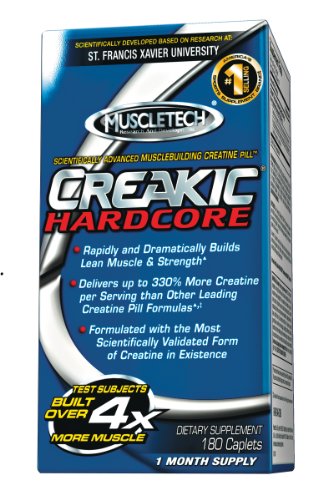 Hardcore Pro Series Creakic Hardcore by Muscletech 180 Caplet Hardcore Pro Series Creakic Hardcore 180 Caplet Rapidly and Dramatically Builds Lean Muscle Strength. Delivers up to 330 More Creatine per Serving than Other Leading Creatine Pull Formulas. Formulated with the Most Scientifically Validated Form of Creatine in Existence. Rapidly and Dramatically Builds Lean Muscle Mass Creakic Hardcore is scientifically engineered to deliver rapid and dramatic gains in both muscle size and strength when combined with your hardcore training product. Its powerful formula is designed to saturated your muscle cells with its advanced Creatine blend which is powered by the most scientifically validated form of Creatine existence. Test Subjects Increased Muscle Fiber Protein Content by 58 In a 12-week study test subjects taking the key ingredient in Creakic Hardcore and following a hardcore training product increased muscle fiber protein content by 58 percent. In this same university study later do