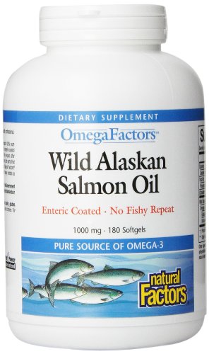 Natural Factors Wild Alaskan Salmon Oil 1000mg Enteric Coated Softgels, 180-Count