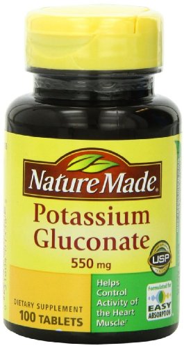A healthy potassium levels is an important part of good heart health and blood pressure maintenance. Supplementing with Nature Made Potassium Gluconate 550 mg helps support several functions of the body including water balance and distribution maintenance, pH balance, muscle and nerve cell function. Nature Made Potassium Gluconate 550 mg also supports healthy heart, kidney and adrenal function in the body, and conversion of blood sugar into its stored form known as glycogen.