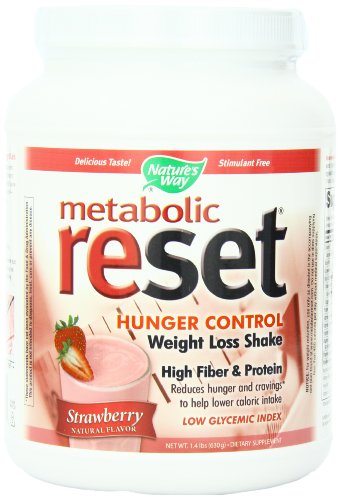Metabolic ReSet Strawberry 630g by Nature's Way 630g Powder Metabolic ReSet Strawberry 630g 630g Powder Product As part of a healthy diet and exercise plan revolutionary Metabolic Reset addresses both the glycemic and caloric causes of weight gain by safely reprogramming appetite to reduce hunger and cravings. Smooth Delicious Natural formula No artificial sweeteners or preservatives No stimulants High fiber high protein Low glycemic index Contains 100 whey protein isolate Only 7 g of net carbohydrates per serving Fortified with vitamins minerals Easier to mix and better tasting than other high fiber and protein shakes No fructose Just 130 calories Suggested Use As a dietary supplement To make a satisfying shake add 2 scoops (45 g) of powder to 8 ounces of cold water. Shake or stir briskly into a smooth consistency. If desired blend in fruit or other healthy ingredients. May also be mixed with skim soy or other milk. - Or as directed by your healthcare professional. Supplement Facts S