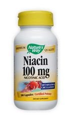 Niacin 100mg by Nature's Way 100 Capsule Niacin (vitamin B3) is necessary for normal breakdown of fats and fatty acids and energy release from carbohydrates. It is an excellent vasodilator. Dosage Take 1 capsule daily preferably with food. Dosage Form Does Not Contain Artificial ingredients yeast milk lactose wheat sugar or soy. Precautions Niacin may cause temporary flushing itching or rash. While this reaction is normal and harmless if you experience any discomfort discontinue use.