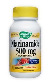Niacinamide 500 Mg by Nature's Way 100 Capsule Niacinamide is the non-flushing form of Niacin (Vitamin B3). It is necessary for the normal breakdown of fats and the release of energy from carbohydrates. Dosage Take 1 capsule daily preferably with food. Dosage Form Does Not Contain Artificial ingredients preservatives yeast milk lactose wheat sugar or soy.