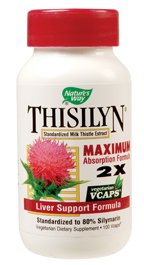 Standardized Milk Thistle Extract Maximum Absorption Formula 2X Vegetarian Vcaps Liver Support Formula Standardized to 80% Silymarin Vegetarian Dietary Supplement Clinical studies using Standardized Milk Thistle extract show that it supports and promotes normal liver function. The active bioflavonoid complex, silymarin, is a powerful antioxidant that exerts a protective effect against substances harmful to the liver. Thisilyn is especially recommended for those who use alcohol, smoke, or are exposed to environmental pollutants. Thisilyn, the unique standardized milk thistle extract, is the standard for quality. The milk thistle used to manufacture Thisilyn is carefully extracted and tested for purity, ensuring all the plants desirable benefits remain bioavailable. The silymarin in Thisilyns proprietary extract dissolves quicker and easier in the digestive tract than other brands yielding 2X more of the active. Shelf Life: 999 days
