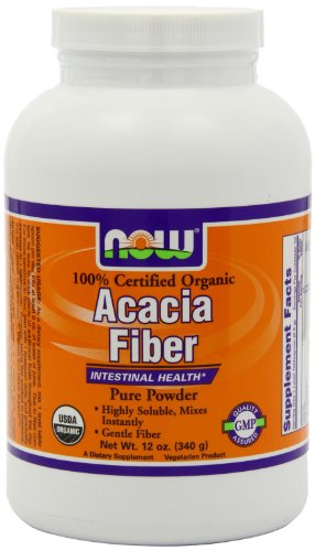 100% Certified Organic Intestinal Health* Pure Powder Highly Soluble, Mixes Instantly Gentle Fiber A Dietary Supplement Vegetarian Product NOW Organic Acacia Fiber Powder is a natural, pure soluble dietary fiber produced from the gum of the Acacia tree. Scientific studies have shown that as part of the diet, soluble fiber can help to encourage intestinal regularity. Acacia Powder is also known to be an excellent prebiotic, as it supports healthy gut flora. Because it actually slows fermentation and decreases gas and bloating, Acacia Powder is well tolerated.* NOW Organic Acacia Fiber Powder can be used daily and contains no GIirritants or stimulants.