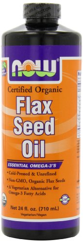 Flax Seed Oil by Now Foods 24 oz Liquid Flax Seed oil has seen a lot of attention recently and for good reason. As a rich source of Omega-3 and -6 essential fatty acids this 100 organic supplement gets its natural healing properties from its high concentration of EFAs and lignans. This powerful duo has been used extensively to balance our immune systems inflammation response normalize hormonal function ease menstruation promote healthy skin dress minor wounds and burns improve digestion and boost energy. Completely safe to take daily NOW Flax Seed Oil promotes sound health one tablespoon at a time. Serving Size 1 Tablespoon Servings Per Container 50 Amount Per Serving Daily Value Calories 125 Calories from Fat 125 Total Fat 14 g 22 Saturated Fat 1 g 5 Polyunsaturated Fat 10 g Monounsaturated Fat 2.5 g Cholesterol 0 mg 0 Total Carbohydrate 0 g 0 Sodium 0 mg 0 Protein 0 g 0 Each serving typically provides the following polyunsaturated fats and monounsaturated fats Linolenic Acid (Omega-