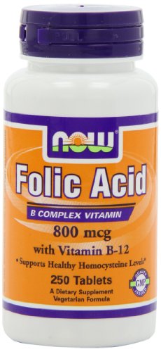 NOW Foods Folic Acid 800mcg, 250 Tablets (Pack of 4)
