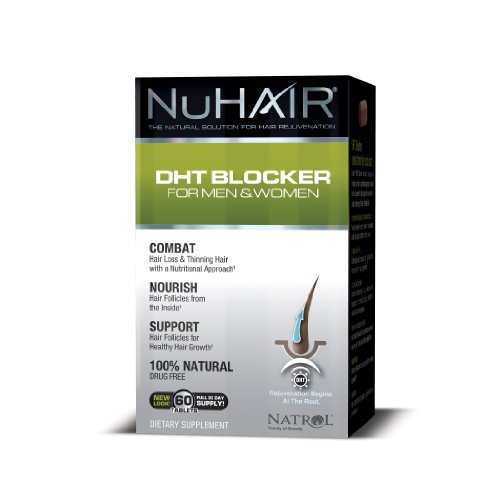 Natrol NuHair is America's #1 Selling Natural System for Hair Loss. NuHair supports follicular growth and thickens hair naturally. It helps to block the negative effects of DHT and delivers vital nutrients to nourish the scalp. Safe, effective and drug free, NuHair is a natural nutrient booster for fine and thinning hair. It energizes the scalp and nourishes the hair shaft to help produce stronger, thicker hair. NuHair has been specifically formulated with natural ingredients which possess DHT-inhibiting properties. As men and women age, rising levels of DHT can lead to hair loss and/or thinning hair. NuHair helps combat the primary type of hair loss in both men and women by blocking the production of DHT. NuHair offers the number one, safe and effective natural supplement for hair loss. Thickens hair naturally. Energizes follicular growth. Provides intensive nourishment. Safe and effective for men and women. NuHair Hair Regrowth is a natural nutrient booster. Natrol makes this product in the U.S.A.!