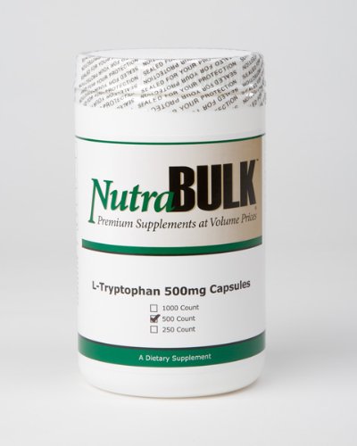 500 Count Bottle of NutraBulk L-Tryptophan 500mg Capsules L-Tryptophan is a naturally occurring amino-acid. L-Tryptophan works to increase the brain's production of serotonin, the neurotransmitter responsible for sleep and relaxation. Serotonin is the precursor to the sleep hormone melatonin and L-Tryptophan supplementation is found to be a safe and effective sleep aid. L-Tryptophan is also used to alleviate depression and assist with alcohol withdrawal and weight loss. NutraBulk's 500mg L-Tryptophan capsules are made from pharmaceutical grade L-Tryptophan and are effective any time of the day for assisting with relaxation, stress and improved sense of calm and well being. Dosage and Use: Take 1-2 capsules before bedtime or as recommended by your health care provider Active Ingredients: Pharmaceutical grade L-Tryptophan Other Ingredients: gelatin (capsule), magnesium stearate (used as flow agent) This product contains NO milk, egg, fish, peanuts,shellfish, soybeans, nuts, wheat, yeast, gluten, corn or rice products. Contains NO sugar, artificial sweeteners, flavors, colors or preservatives. Cautions: If you are undergoing treatment for a medical condition or are pregnant or lactating, consult with your healthcare provider before taking any nutritional supplements. Warnings: Keep out of reach of children. Do not exceed recommended dose. Causes drowsiness. Alcohol may intensify this effect. Do not use if outer seal is broken If you have a reaction to L-Tyrophan or any nutritional supplement, discontinue use immediately These statements have not been evaluated by the Food & Drug Administration. This product is not intended to diagnose, treat, cure or prevent any disease.