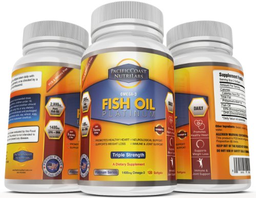 2000mg FISH OIL OMEGA 3 SUPPLEMENTS - Triple Strength Omega 3 Fatty Acids - 1,400mg Essential Fatty Acids (800mg EPA + 600mg DHA per serving) - ★ IMPROVE HEALTH RESULTS OR YOUR MONEY BACK ★ 120 Burpless Capsules - PLATINUM Series Pharmaceutical Grade & Mo