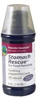 Stomach Rescue by Peaceful Mountain 4 oz Liquid Stomach Rescue Information All natural supplement for calming an upset stomach Most food poisoning is caused by concentrations of bacteria and transported by infected food or water. Symptoms of stomach cramps and diarrhea can ruin a vacation make for a miserable night or worse. In the US annually there are over 70 million cases of food poisoning Food poisoning is an acute gastrointestinal disorder caused by bacteria or their toxic byproducts. Stomach Rescue has been laboratory tested against the four primary sources of food poisoning Staph. A. Salmonella Lysteria and E. Coli. Ionic silver may be an effective tool for supporting your immune system in the presence of emerging strains of bacterial viral and fungal infections. Ingredients Purified Water and Ionic Silver 40 ppm and peppermint oil