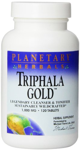 Triphala is the legendary intestinal cleanser and tonifier of India. Planetary herbals triphala gold is made with premier, high quality fruits. Grown without chemicals and pesticides in the pristine forests of Madhya Pradesh, each fruit is sustainably wild crafted and processed to maintain its freshness, purity, and quality. Deeply cleansing and tonifying, triphala gold is a potent, yet gentle formula designed to support the body's natural detoxification and antioxidant processes.