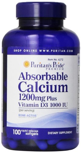 Puritan's Pride Absorbable Calcium 1200 mg with Vitamin D 1000 IU, 100 Softgels