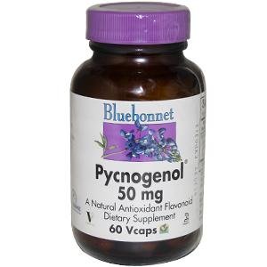 Pycnogenol 50mg by Bluebonnet 60 Capsule PYCNOGENOL 50 mg. Vcaps Patented pine bark extract imported from France. Pycnogenol is a concentrated source of OPC's (oligomeric proanthocyanidins). Available in easy-to-swallow vegetable capsules for maximum assimilation and absorption.